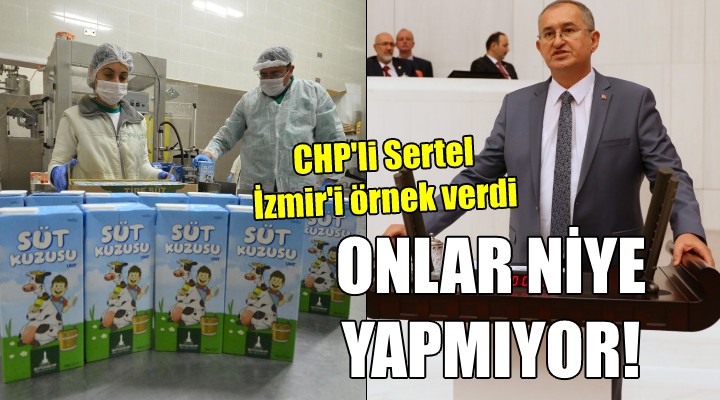 Sertel, “Adalet ve Kalkınma Partili belediyelerin olduğu yerde niçin süt dağıtılmıyor? Niçin oradaki çocuklar, Konya'da, Kayseri'de, Erzurum'da, Erzincan'da, Balıkesir'de, Gümüşhane'de, Kastamonu'da, Trabzon'daki belediyeler, niçin 1-5 yaş çocuklarınıza süt içirtmiyorsunuz ve hayvancılığı desteklemiyorsunuz? Sizin elinizi kim bağlıyor? İzmir size örnek olsun. Biz de aracı olalım İzmir milletvekilleri olarak. Gelin, İzmir'deki uygulamayı bir görün. Gelin, bunu Türkiye'ye taşıyalım, hayvancılığı da geliştirelim” diye konuştu.