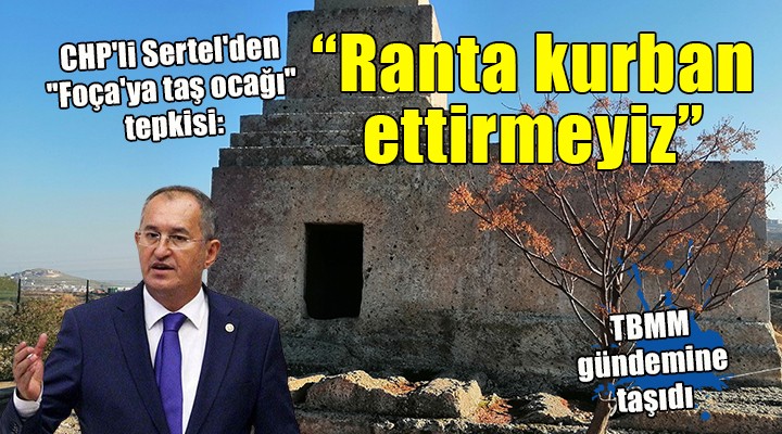 SONKALEİZMİR-CHP İzmir Milletvekili Atila Sertel, TBMM'de yaptığı konuşmasında Foça'da kurulmak istenen taş ocağına tepki gösterdi. ÇED süreci başlatılan projeye Foçalılar'ın karşı çıktığını vurgulayan Sertel, 2 bin 500 yıllık Pers Mezar Anıtı'nın tarihi önemine dikkat çekti.