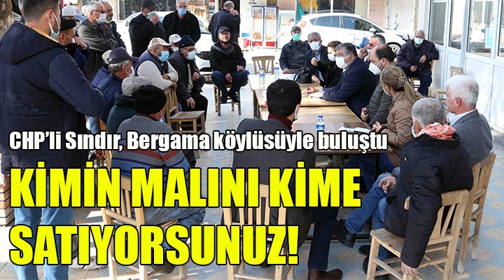 İktidarın 18 yıldır Türk köylüsünü yok saydığını, şimdi de aynı siyasi parti tarafından Bergama’da kazanılan belediyenin köylülerin ata toprağının satışa çıkarıldığını ifade eden Sındır, “9 yıl önce bu düzenlemeye karşı itirazlarımızı yaparken bu yasayla birlikte köylere kilit vuracağını, köy mallarının haraç mezat satılacağını söyledik. Bugün binlerce ailenin geçim kaynağı olan 831 bin 938 m2 verimli tarım arazisi Bergama Belediyesi tarafından satılıyor. Köylünün iki gözü iki çeşme, fakat AKP’li Bergama Belediyesi’nin gözü ise satıştan gelecek parada. Kimin malını kime satıyorsunuz! Bu arazilerin her köyde onlarca ailenin geçim kaynağı olduğunu bilmiyor musunuz? Bu arazilerin o köylerde yaşayan yurttaşlarımızın ataları, dedeleri tarafından köylerine kazandırıldığını size söyleyen olmadı mı? Siz yolcusunuz, köylü hancı. Yarın burada olmayacaksınız, satışa çıkardığınız söz konusu mülklerin gerçek ve öz sahipleri olan köy halkına nasıl hesap vereceksiniz?” dedi.