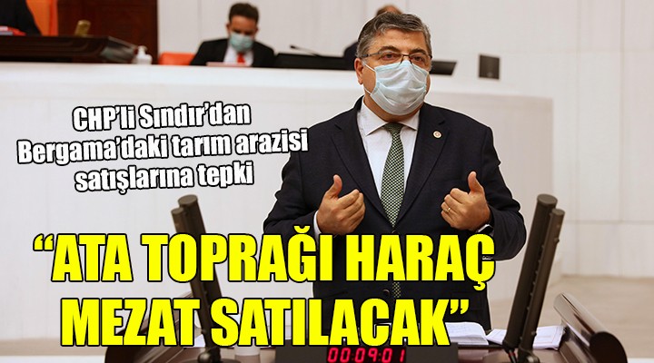 CHP İzmir Milletvekili Kamil Okyay Sındır, 6360 sayılı Bütünşehir Yasası’yla birlikte mülkiyetleri Bergama Belediyesi'ne devredilen verimli tarım arazilerini de içeren taşınmazların satışa çıkarılmasını TBMM gündemine taşıdı. İçişleri Bakanı Süleyman Soylu’nun yanıtlaması istemiyle soru önergesi veren Sındır, “Köylülerimize atalarından, dedelerinden kalan mülkleri ve arazileri, vergi ödemelerini yaptıkları Bergama Belediyesi tarafından haraç mezat satılacak. 831 bin 938 metrekare verimli tarım arazisi yurttaşlarımızın sesine kulak tıkanarak, onların haklı sitemleri görmezden gelinerek satılıyor” dedi.