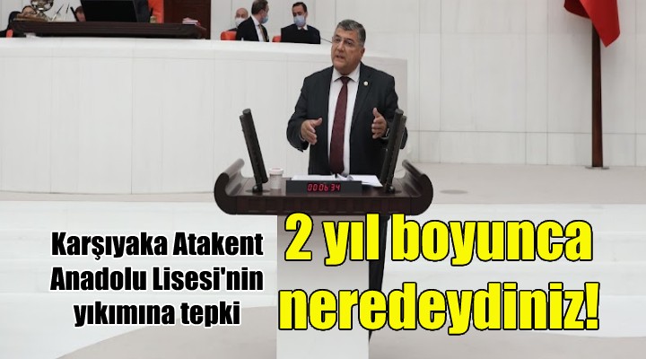 “İzmir’imizin önemli liseleri arasında yer alan Karşıyaka Atakent Anadolu Lisesi’nin ‘depreme dayanıksız’ olduğu gerekçesi ile yıkılmasına ve bu nedenle de okulun 1 ay içerisinde boşaltılması talimatı verildi bilgisi basın organlarında yer aldı. Lisenin depreme dayanıksız olduğu ne zaman tespit edildi, lisenin yıkım kararı hangi tarihte alındı, bu karar okula hangi tarihte bildirildi, öğrencilerin, velilerin ve kamuoyunun bundan haberi yok. 2022 Yılı Ortaöğretim Kurumlarına Yerleştirme Sonuçlarına göre 300’e yakın yeni öğrencinin okula kayıt olduğu söyleniyor. Devletin kurumları birbirinden habersiz ki okula kayıt alıyor.”