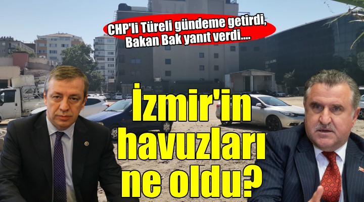CHP'li Türeli, Bakan Bak'a; depreme dayanıksız olduğu gerekçesiyle geçen Şubat ayında yıkılan, alanı otopark olarak kullanılan Alsancak Atatürk Yüzme Havuzu'nun durumunu ve dönemin Spor Bakanı Mehmet Muharrem Kasapoğlu tarafından taahhüt edilen ancak henüz somut adımların atılmadığı Halkapınar Olimpik Yüzme Havuzu'nun akıbetini sordu.