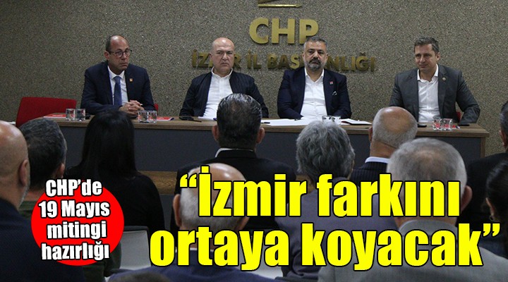 CHP'nin 19 Mayıs Gençlik ve Spor Bayramı'nda İzmir'de düzenleyeceği büyük miting için hazırlıklar başladı. CHP İzmir İl Başkanlığı'nda genel başkan yardımcıları Deniz Yücel ve Murat Bakan'ın yanı sıra ilçe başkanlarını ağırlayan CHP İzmir İl Başkanı Şenol Aslanoğlu, "İzmir yine farkını ortaya koyacak! Tüm İzmir’i, tüm Ege’yi 19 Mayıs’ta Gündoğdu Meydanı’na, Ekrem İmamoğlu’na özgürlük, memlekete demokrasi kazandırmak için davet ediyoruz" dedi.