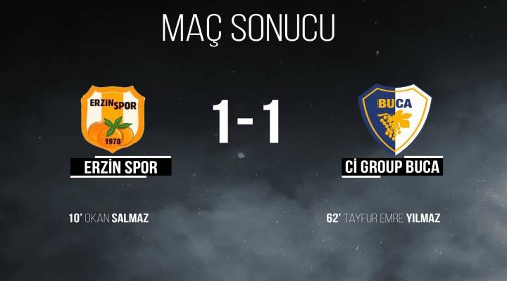 SONKALEİZMİR-3. Lig 1. Grup'taki ilk maçında evinde Çankaya Futbol'u 4-2 mağlup eden Cİ Grup Buca deplasmanda Erzinspor'la 1-1 berabere kaldı. 10. dakikada Okan Salmaz ile öne geçen ev sahibine 62. dakikada Tayfur Emre ile yanıt veren İzmir ekibi sahadan 1 puanla ayrıldı. Erzin'de Sefa Aktepe 74. dakikada, Buca'da Erhanm Kurt ise 90. dakikada kırmızı kartla oyun dışı kaldı.