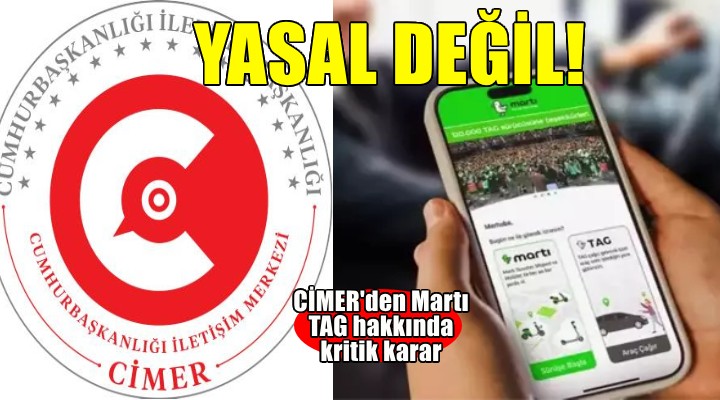 Bir vatandaşın Cumhurbaşkanlığı İletişim Merkezi (CİMER)'e yaptığı şikayet başvurusu sonrasında, Martı TAG uygulamasıyla ilgili kritik bir karar alındı. CİMER'in resmi yanıtında, Martı TAG’ın herhangi bir devlet ruhsatı ve belediye izni bulunmadığı, bu nedenle uygulamanın korsan taşımacılık kapsamına girdiği ifade edildi.
