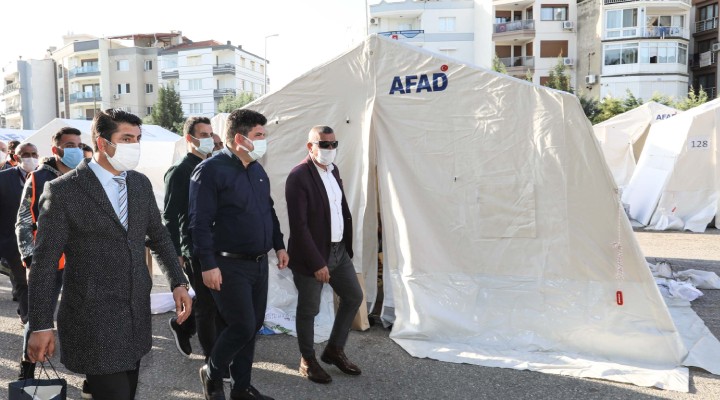 Buca Belediye Başkanı Av. Erhan Kılıç, koronavirüs sürecini sağlıklı bir şekilde atlatan Buca Muhtarlar Birliği ve Buca Muhtarlar Derneği yönetimiyle birlikte Şirinyer Hipodromu’nda kurulan çadır kenti ziyaret etti.