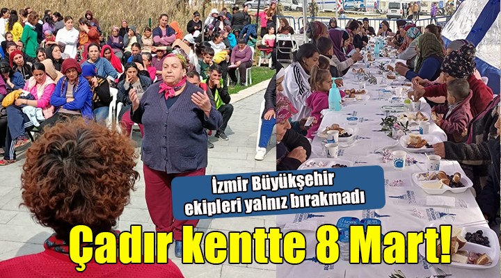 İzmir Büyükşehir Belediyesi, Hatay’da kurduğu çadır kentte yaşayan kadınların "8 Mart Dünya Kadınlar Günü’nü kutladı. Bu anlamlı günde kadınları yalnız bırakmayan Büyükşehir Belediyesi Sosyal Projeler Dairesi Başkanlığı ekipleri, kadınların temel ihtiyaçlarının yer aldığı hediyeleri dağıttı.