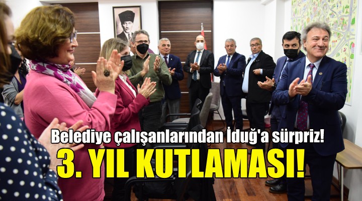 Bornova Belediye Başkanı Dr. Mustafa İduğ görevdeki üçüncü yılına, mazbatasını alıp belediye başkanlığını devraldığı gün ve saatte yapılan kutlama ile girdi. Müdürler ve birim amirlerinin katıldığı kutlamada hep birlikte kutlama pastası kesilirken Başkan İduğ’un mazbatasını aldığı ve makama ilk geldiği gün çekilen fotoğraflardan oluşan bir hediye sundu. Başkan İduğ ise tüm çalışma arkadaşlarıyla uyum içinde olmanın mutluluğunu yaşadığını söyledi.
