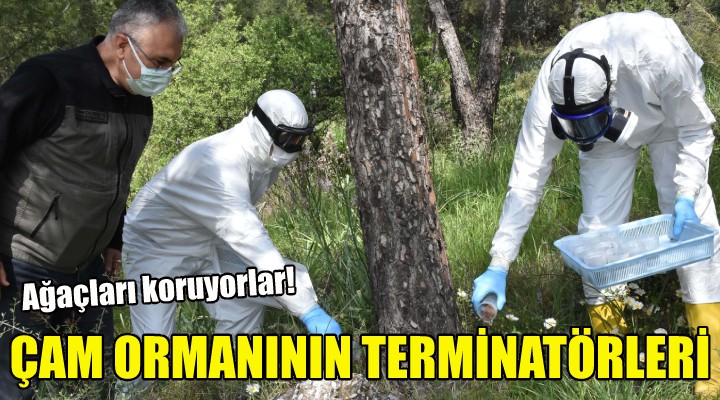 Orman böcek ve hastalıklarına karşı en etkili mücadele metotlarını tespit ederek çıkabilecek zararlı ve enfeksiyonlara karşı mücadele planlarının uygulanmasını sağlayan İzmir Orman Bölge Müdürlüğü, kızılçam ağaçlarına zarar veren çam kese böcekleriyle mücadelesini sürdürüyor.