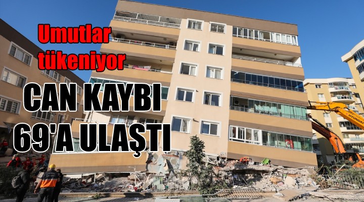 AFAD'dan deprem bölgesindeki son gelişmelere ilişkin yapılan açıklamada, can kaybının 69'a yükseldiği bildirildi. Yaralanan 949 kişiden 729'unun taburcu edildiği, 220 kişinin tedavisine devam edildiği belirtilen açıklamada, İzmir'de halen 8 binada arama kurtarma çalışmasının sürdürüldüğü kaydedildi. Açıklamada ayrıca, depremin ardından meydana gelen artçı sarsıntıların sayısının da 987 olduğu ifade edildi.