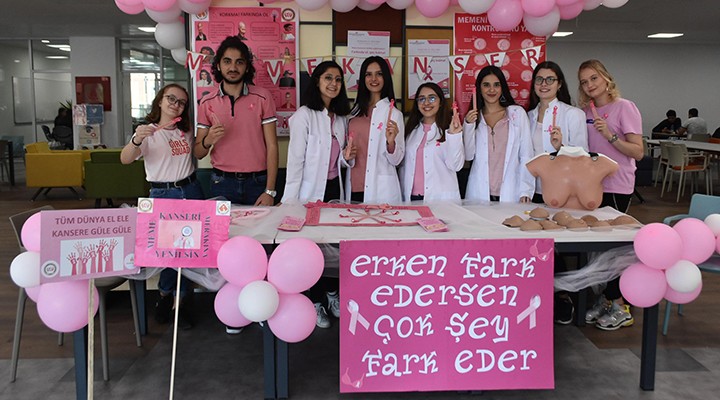 Meme kanserinde farkındalık oluşturmak için İzmir Ekonomi Üniversitesi bünyesinde öğrencileriyle birlikte stant açtıklarını belirten Prof. Dr. Karayurt, sözlerini şöyle sürdürdü:
