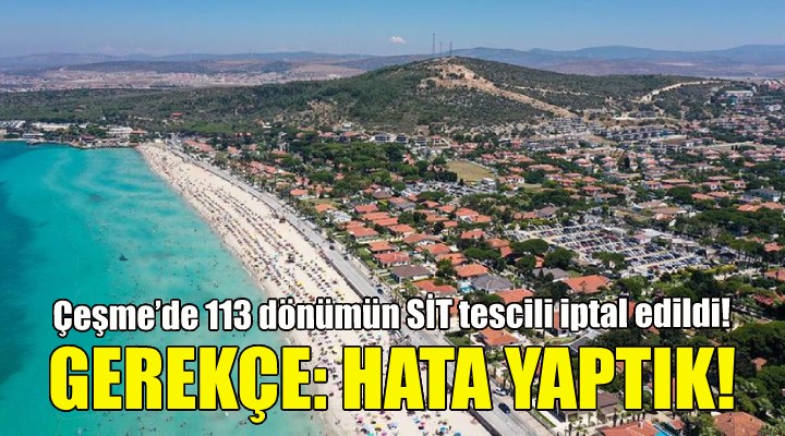İzmir İli Çeşme İlçesi Germiyan Mahallesi Ören Mevkiinde, özel ve kamu mülkiyetine kayıtlı bulunan ve Doğal Sit-Nitelikli Doğal Koruma Alanı sınırları içerisinde kalan parseller ile tescil harici alanın, 3. derece arkeolojik sit alanı olarak tesciline ilişkin alınan İzmir 1 Numaralı Kültür Varlıklarını Koruma Bölge Kurulu’nun 22 Aralık 2021 tarihli kararı ekinde yer alan sit paftası ile tescil fişinin iptal edilmesine, güncellenen tescil fişi ile sit paftasının uygun olduğuna karar verildi.”