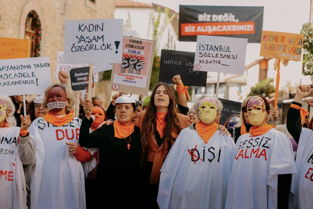 “Özellikle eril anlayışla yönetilmeye çalışılan bir ülkede 25 Kasım asla kutlama günü olamaz. 1 Ocak’tan bugüne, yalnızca 2025 yılında erkek şiddetiyle katledilen en az 411 kadının adını biliyoruz; bir o kadarının kayıtlara dahi geçmediğini biliyoruz. Bu tablo, İstanbul Sözleşmesi’nden çekilme kararının ve 6284 sayılı kanunu uygulamaktan kaçınan zihniyetin sonucudur.
