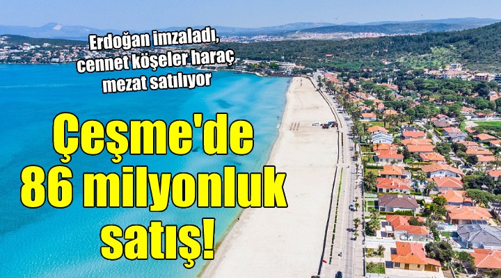 Cumhurbaşkanı Recep Tayyip Erdoğan, Türkiye'nin cennet köşelerindeki 7 kamu arazisinin satışını onaylarken, 3 taşınmaz için de imar değişikliğine onay verdi. Bu kapsamda Çeşme'de mülkiyeti Hazine'ye ait iki taşınmaz 86 milyon 650 bin TL'den satıldı.