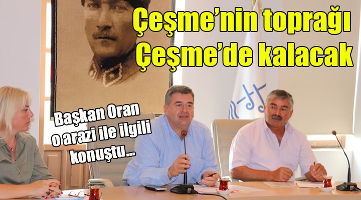 2 milyon metrekarelik arazinin Çeşme Belediyesi tarafından kiralanması için İzmir Büyükşehir Belediyesi’nin de destek verdiğini dile getiren Başkan Oran, “Biz buranın malının herhangi bir şahsa verilmesini istemiyoruz. Biz belediyeyiz, biz kamu kurumuyuz, biz Çeşme halkıyız. Biz Çeşme halkının oylarıyla seçilmiş Çeşme Belediyesi Meclisi’yiz. Çeşme’nin topraklarına sahip çıkmak da bizim görevimiz” diye konuştu.