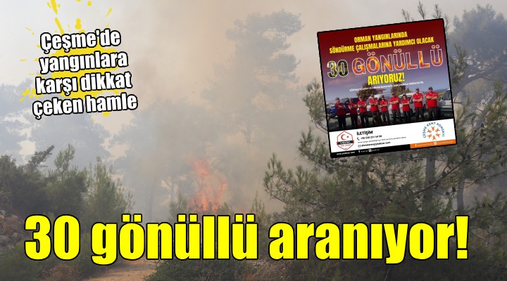 Çeşme ve yarımadada evlerimizi, tarlalarımızı ve üst yapılarımızı yangından korumak için OGM’nin Orman Yangını Gönüllüsü akreditasyonu için 30 sağlıklı, güçlü gönüllüye ihtiyaç duymaktayız. Gönüllü olacak arkadaşlar Orman Bakanlığı tarafından İzmir’de eğitim alacaklar ve sertifika verilecektir.