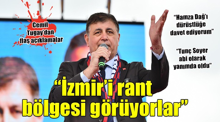 Hamza Dağ'ın Karantina Adası ile ilgili planlarına tepki gösteren Cemil Tugay, "Karantina Adası, karantinadan kurtulacak' diye gerçekten komik bir ifadeyle popülizm peşinde koşuyorlar. Karantina adası belediyenin değil, bakanlığın. Hangi yetkiyle turizme açacaksınız. Oradan rant çıkarmaya çalışıyorlar. Kim bilir kime otel yaptıracaklar, kimbilir kime gelir kapısı yaratacaklar. Bunlar halk plajları yapan insanlar değil. Sürekli satıyorlar, kiralıyorlar, tahsis ediyorlar. Oralara halk giremiyor. Karşıyaka Soğukkuyu'da üst geçide yazmış sayın aday. Soğukkuyu Kavşağı düzenlemesi geliyor. O Soğukkuyu bölesinden dere geçiyor. Battıçıktı yapamazsınız, teknik olarak mümkün değil. Serinkuyu'yu kastediyor olabilir dediler. Oradan da alttan büyük kanal geçiyor. Buna karşılık bizim gerçekçi bir projemiz var. Mavişehir'i yukarı mahallelere bağlayan Cumhuriyet Mahallesi'ne üst geçiş ile... Bu proje hazır. İnşaatını hemen başlatacağım. Uygulanamayacak projeyi yazmışlar. Anlamsız şeylerle insanların karşısındalar. Hükümet olarak yapmaları gerekeni hükümet olarak yapmıyorlar. İzmir'e yaşattıkları mağduriyete devam edecekler. Gözleri İzmir'de. İzmir'i rant bölgesi olarak görüyorlar. İzmir'i ele geçirelim de nasıl bir rant çıkaralım derdindeler" diye konuştu.