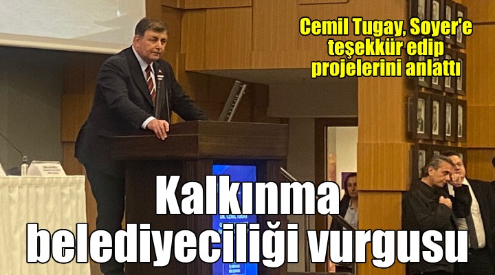 İlk etapta uygulayacakları projelere dikkat çeken Tugay, "Ulaşımla ilgili ana arterlerde çalışmalarımız olacak. Derhal müdahale gerektiren deniz taşkınları ile ilgili çalışmalar. İlk 180 günde en öncelikli yapacağımız çalışmalar olacak. Orta ve uzun vadede yaklaşık 250 proje ile kentimizi sorunlarından arındıracak hem de gelecekteki su, enerji, gıda krizinden koruyacak adımlar atacağız. Kentimizde daha iyi bir yaşam için, kentimizi geleceğin sorunlarına hazırlamak için çalışan tüm sivil toplum kuruluşlarımızın, üniversitelerimizin, meslek odalarımızın, tüm yurttaşlarımızın yanında olacağız. Önce İzmir'de sonra Ege Bölgesi'nde sonra tüm Türkiye'de uyum içerisinde çalışacağız. Sadece altyapı, üstyapı ve sosyal belediyeciliği değil kalkınma belediyeciliği yapacağız. Şehrimiz için 1 Nisan'dan sonra başlayacak sürecin hepimize iyilikler getirmesini diliyorum" diye konuştu.
