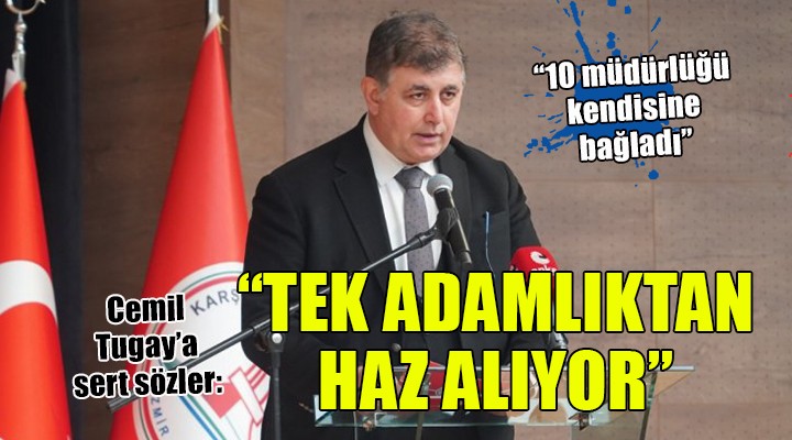 "Park ve Bahçeler Müdürlüğü, Fen İşleri Müdürlüğü, Ulaşım Hizmetleri Müdürlüğü, Tesisler Müdürlüğü, İç Denetim Birimi, Teftiş Kurulu Müdürlüğü, Özel Kalem Müdürlüğü, Zabıta Müdürlüğü, Hukuk İşleri Müdürlüğü, Basın, Yayın ve Halkla İlişkiler Müdürlüğü'nden oluşan tam 10 müdürlüğü bizzat kendine bağlayan Karşıyaka Belediye Başkanı Sn. Cemil Tugay, "Tek adam rejimine son vereceğiz." şeklinde bir çıkış yapmış. Tek adamlıktan bu kadar haz alırken, böyle bir açıklamada bulunmak gaflettir. Son vermek istediğiniz "Tek adamlığınız" için adım atmak sizin elinizde Sayın Başkan."