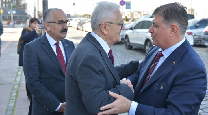 CHP İzmir Büyükşehir Belediye Başkan Adayı Dr. Cemil Tugay’ı İZTO ziyaretinde İZTO Yönetim Kurulu Başkanı Başkanı Mahmut Özgener, Meclis Başkanı Selami Özpoyraz, Yönetim Kurulu, Disiplin Kurulu üyeleri karşıladı. Özgener, ziyaretten duydukları memnuniyeti dile getirdi. CHP İzmir İl Başkanı Şenol Aslanoğlu’nun da eşlik ettiği toplantıda İzmir'in sanayi ve ticaret alanlarının yanı sıra kentin ekonomik ve sosyal alanda kalkınması için yerel yönetimler ile iş birliği konuları ele alındı.