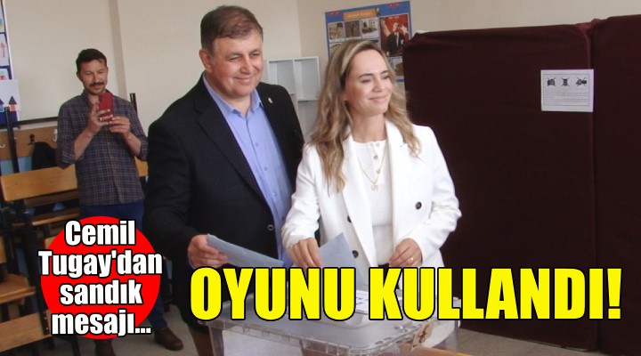 CHP İzmir Büyükşehir Belediye Başkan Adayı Cemil Tugay, saat 12.30'da eşi Öznur Tugay’la Karşıyaka Şehit Polis Samet Kırcalı Ortaokulu’nda kurulan 2110 No’lu sandığa giderek oyunu kullandı.