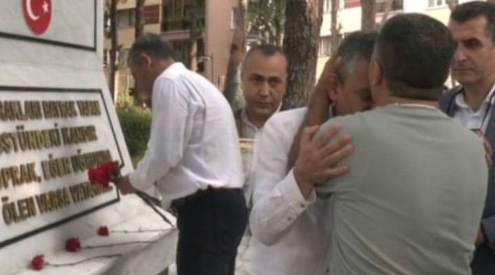 Dua sonrası vedalaşırken baba İkram Burak Özgür Özel’in alnından öperken şehit Budak’ın ikiz kardeşi Yunus Budak ise CHP Lideri Özel’e “Allah senden razı olsun” dedi.