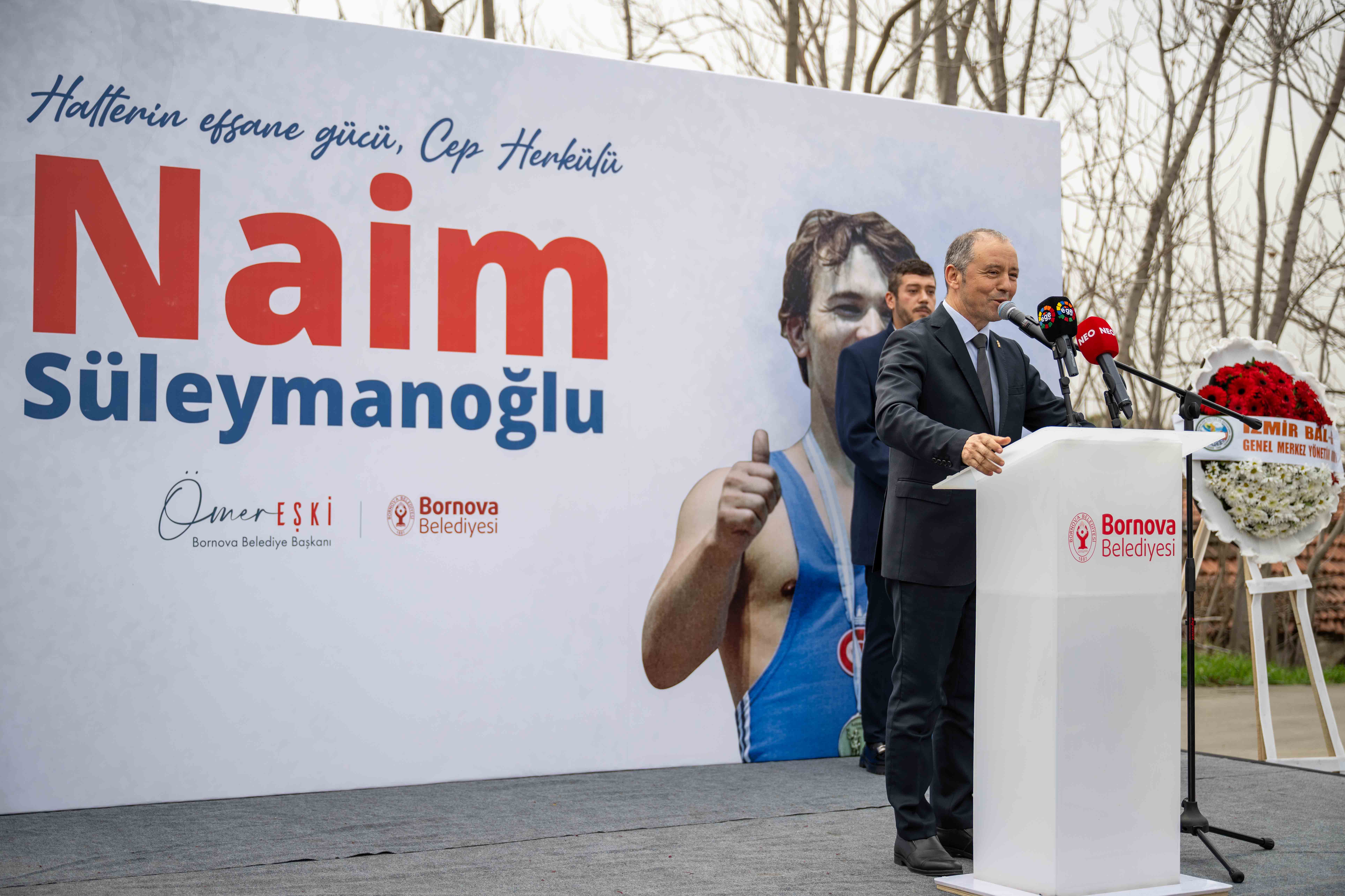Kemalpaşa Muhtarı Mustafa Karadeniz ve Gürpınar Mahallesi Muhtarı Erkin Sarpkaya da konuşmalarında Naim Süleymanoğlu’nun Türk kimliği, direnişi ve umut olma misyonuna vurgu yaparak, hem bölgeye yapılan yatırım ve çalışmalar için Bornova Belediyesi’ne teşekkür etti.