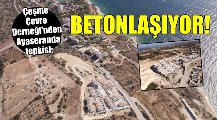 SONKALEİZMİR-Çeşme Çevre Derneği'nden yapılan açıklamada ilçenin cennet köşelerinden Ayaseranda'nın turizm imarı adı altında betonlaştırıldığı belirtildi. Yazılı açıklamada şöyle denildi: