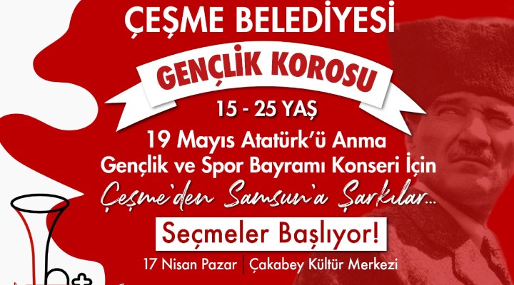 “En güzel enstrüman İnsan Sesidir ve Koro İnsan demektir” diyen Orkestra ve Koro Şefi Uğur Sayınbatur ise “Çeşmeli gençlerimizle birlikte nefes alıp hikayemizi oluşturacağımız, kültürel kazanımlar elde edeceğimiz Çeşme Belediyesi Gençlik Korosu korist seçmelerinde, adayların müzikal işitmelerine, ses renklerine, müziğe yatkınlıklarına, melodi ve ritim hafızalarının göz önünde bulundurulacağı bir performans sınavı yapılacak” şeklinde konuştu.