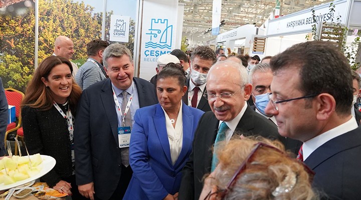 CHP’li belediyeler tarafından kurulan standları gezen Cumhuriyet Halk Partisi Genel Başkanı Kemal Kılıçdaroğlu, İstanbul Büyükşehir Belediye Başkanı Ekrem İmamoğlu ile birlikte Çeşme Belediyesinin yerel ürünlerinin sergilendiği standını ziyaret etti.