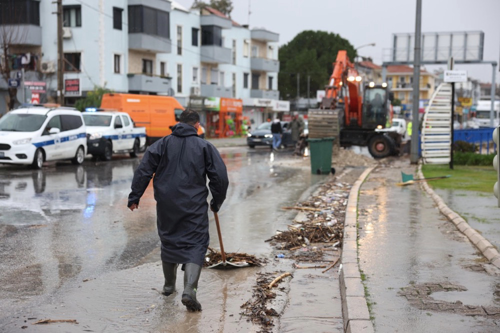 Mazgal temizliği, saha kontrolleri, su birikintilerine müdahale, yol kapatma, taş ve çamur temizliği ile riskli bölgelerde trafik güvenliğini sağlamak amacıyla yol kapatma ve yönlendirme çalışmalarını yürüten ekipler, yağışın etkilerine karşı çalışmalarını aralıksız sürdürüyor.