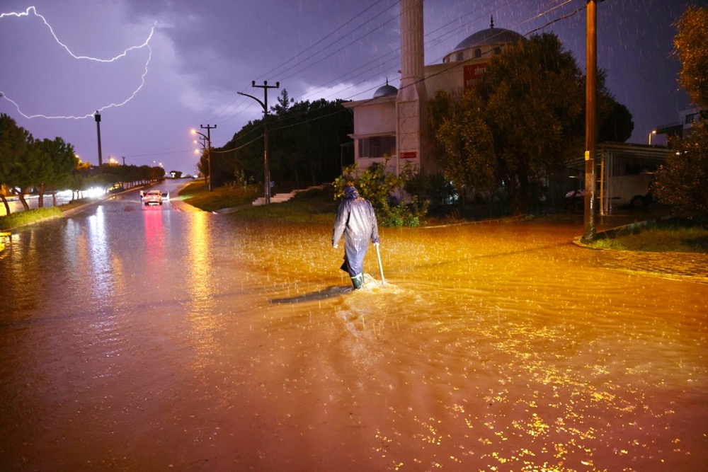 İzmir'in Çeşme ilçesinde sağanak hayatı olumsuz etkiliyor