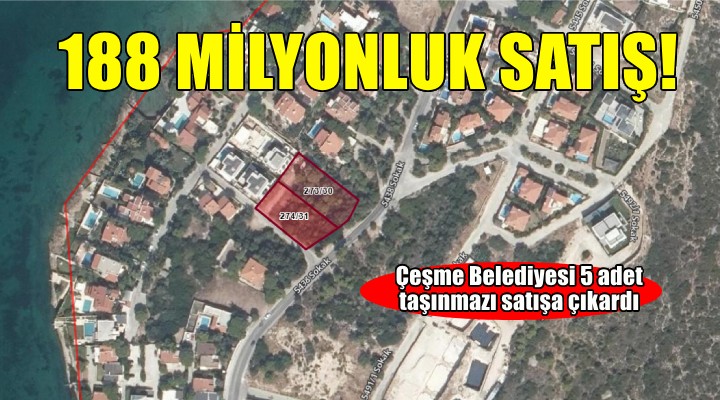 SONKALEİZMİR- Çeşme Belediyesi, bünyesinde bulunan 5 adet taşınmazı satışa çıkardı. Ilıca ve Ardıç mahallelerinde bulunan taşınmazların tamamından 188 milyonluk gelir elde edilmesi bekleniyor.