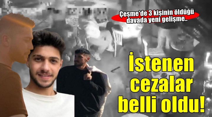 Çeşme Cumhuriyet Başsavcılığınca, tutuklu sanık B.B. hakkında 3 maktule karşı "kasten öldürme" suçundan 3 kez müebbet, A.D. ve A.M'ye karşı "kasten öldürmeye teşebbüs" suçundan 18'er yıla, "ateşli silahlar kanununa muhalefet" suçundan ise 3 yıla, tutuklu sanık O.A. ve tutuksuz sanık Ö.Ö. hakkında "kasten öldürmeye yardım etme" suçundan 15'er yıla, "kasten öldürmeye teşebbüse yardım etme" suçundan da 9'ar yıla kadar hapis cezası istemiyle hazırlanan iddianame mahkemece kabul edilmişti.