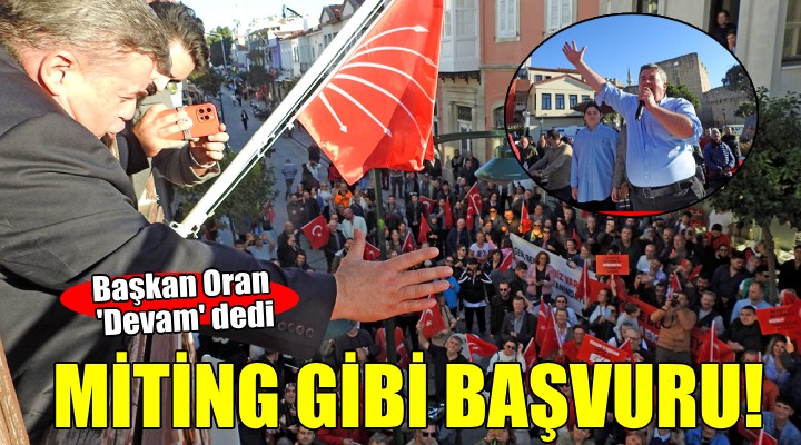 Oran, eşi ve oğlu ile birlikte CHP İlçe Örgütü'ne girerken, CHP İlçe Başkanı Sait Kavasoğullar ve yönetim kurulu üyeleri tarafından karşılandı. Oran, belediye başkanlığı aday adaylığı dosyasını İlçe Başkanı Kavasoğullar' teslim etmesinin ardından balkona geçerek, Çeşme çarşısındaki Çeşmelilere kendisine verdiği destek nedeniyle teşekkür etti.