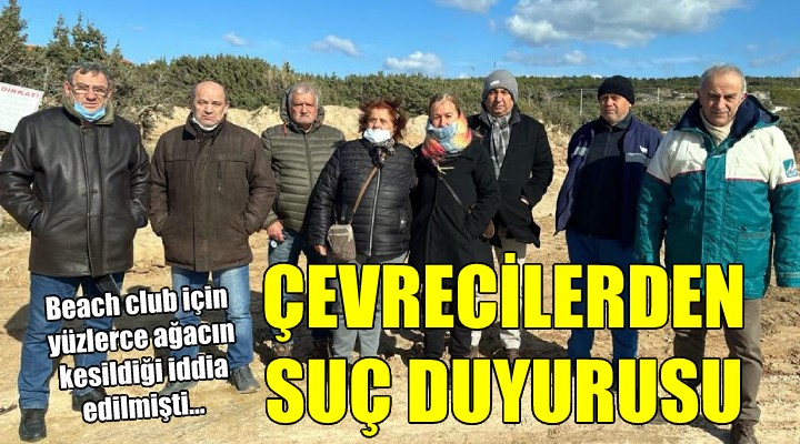 Kentin turistik ilçesi Çeşme’deki Altınkum Beşevler mevkisinde iddiaya göre, denize sıfır alanda beach club inşaatı sırasında asırlık ardıç ağaçları kesildi. Çeşme Çevre Platformu kurucularından Ahmet Güler, bugün bölgede inceleme yaptıktan sonra Çeşme Cumhuriyet Başsavcılığı’na konuyla ilgili suç duyurusunda bulunduklarını açıkladı. Deniz kıyısındaki endemik bitkilerin ve ağaçların kesilmesi nedeniyle çevrenin tahrip edildiğini söyleyen Ahmet Güler, "Bu işletmenin kira kontratında sadece 6 metrekarelik bir büfenin yapılmasına izin verilmiş. Bizim yaptığımız tespitte ise en azından 3-4 dönümlük deniz kıyısı bir alan iş makineleriyle tahrip edilmiş durumda. Çok büyük bir betonarme inşaatı yapmak için temeller kazılmış ve büyük miktarda inşaat demiri bölgeye getirilmiş. Bugün çevre gönüllüleri ve bölge sakinleri bir araya geldik. Çeşme Cumhuriyet Başsavcılığı'na giderek inşaat yapanlar hakkında suç duyurusunda bulunduk. Çeşme Cumhuriyet Başsavcılığı yetkilileri ise bölgeye jandarma ekiplerinin yollandığını, eğer kanuna aykırı bir durum varsa bunun tespiti halinde konunun kamu davası olarak devam edeceğini söyledi" dedi.