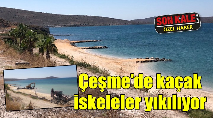 SONKALEİZMİR (ÖZEL)-Çeşme Belediyesi, Alaçatı'daki kaçak deniz iskeleleri için kolları sıvadı. Alaçatı'nın sörf merkezi olma özelliğine darbe vuran çok sayıdaki kaçak iskele iş makineleri ile ortadan kaldırıldı. Bir süredir iskelelere karşı mücadele yürüten Çeşme Çevre Platformu, Alaçatı'nın tahribatına izin verilmemesi için Çeşme Belediyesi'ne başvuruda bulunmuştu. Çevrecilerin girişimlerinin ardından Belediye Başkanı Ekrem Oran talimatı verdi ve kaçak deniz iskeleleri yıkılmaya başlandı.