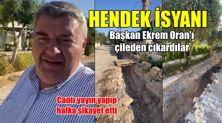 Müteahhit firmanın yolları kazdığını, belli noktalarda hatları dahi yerin altına almadan, kazılı halde bırakıp gittiğini anlatan Başkan Oran, "Yeryüzündeki cennet Çeşmemizin Altın Yunus Mahallesindeyim. Ben bugün bir kurumu size şikayet edeceğim. Kasım ayında kazı izinlerini belediyemizden alan, elektrik hatlarını yerin altına alma amacıyla kazı yapan bu kurumun müteahhidi Kasım ayından beri kazdığı bu yolları elektrik hattını da bazı yerlerde yerin altına almadan bırakmış durumda. Belediyemiz bu kuruma 490 bin TL ceza kesti ama yetmiyor. Kurumun müteahhidi bu kazıları yaparken pis su borularını kırmış, su borularını koparmış" dedi.