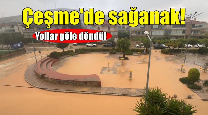 Sağanağın ardından Alaçatı pazar yeriyle Çeşme Limanı yolcu kapısı önünde de derin su birikintilerinin oluştuğu görüldü.