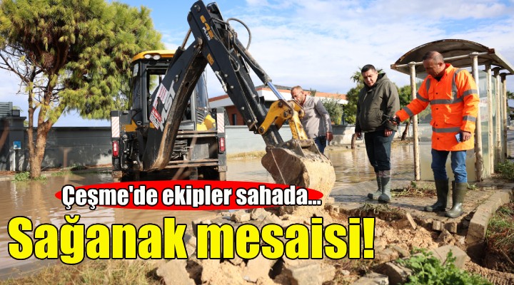 Çeşme’de dün başlayan ve sabah saatlerinde şiddetini artıran yoğun yağışa karşı ilçede herhangi bir olumsuzluk yaşanmaması için Çeşme Belediyesi’ne bağlı Fen İşleri, Temizlik İşleri, Zabıta, Park Bahçeler ve Destek Hizmetleri Müdürlükleri tüm ekipleriyle sahada çalışmalarını aralıksız sürdürüyor.