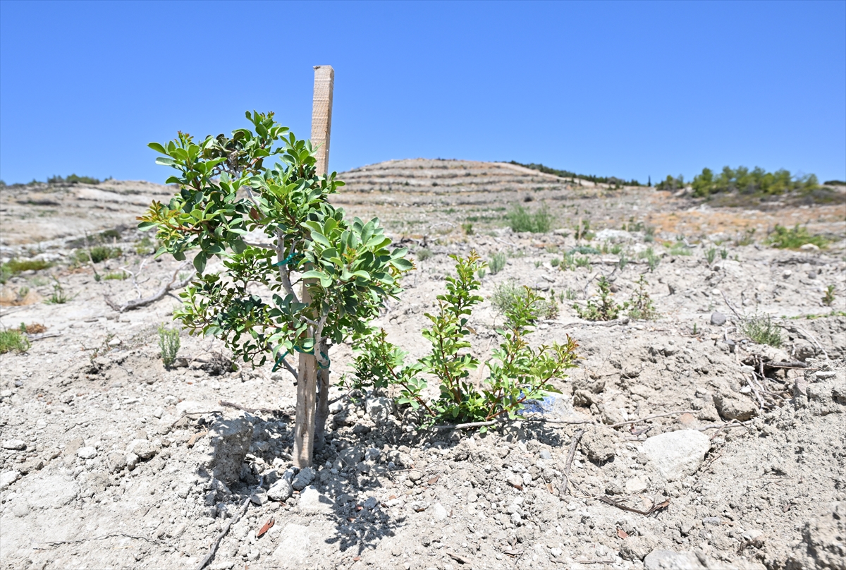 Derince, yanan alanlara sakız fidanlarının yanı sıra kızılçam, kara selvi, zakkum, keçi boynuzu gibi 70 bin fidanın da toprakla buluşturulduğunu ifade etti.