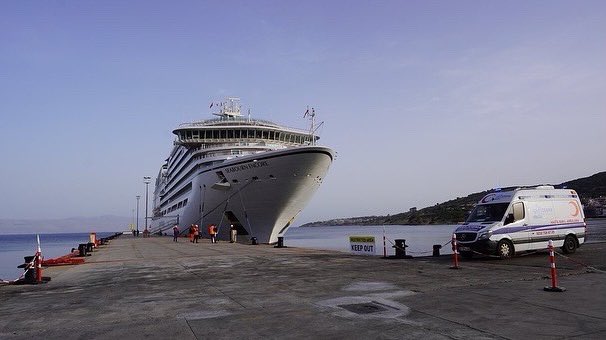 SONKALEİZMİR-Çeşme Belediye Başkanı Ekrem Oran, Çeşme Ulusoy Limanı'na yanaşan Seabourn Encore Kruvaziyer gemisini karşıladı.