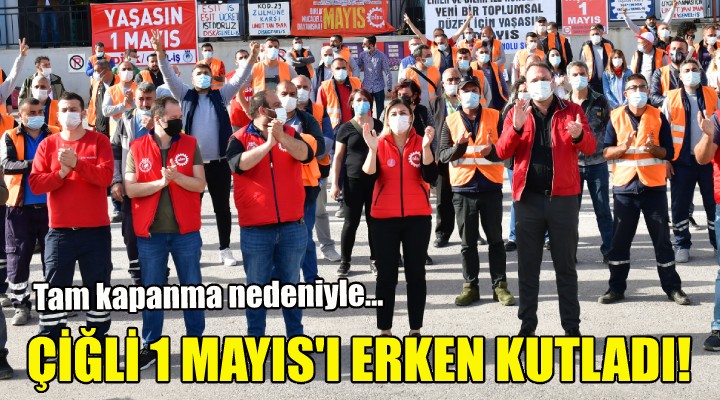 Çiğli Belediyesi, İçişleri Bakanlığı tarafından, 29 Nisan – 17 Mayıs tarihleri arasında uygulanacağı açıklanan tam kapanma dönemine denk gelen 1 Mayıs İşçi Bayramı erken kutladı. Çiğli Belediye Başkanı Utku Gümrükçü, DİSK Genel-İş 8 No'lu Şube Başkanı Deniz Şahin Gümüştekin, işyeri sendika temsilcileri ve Belediye emekçilerinin katıldığı kutlama Şantiye Tesislerinde gerçekleştirildi.