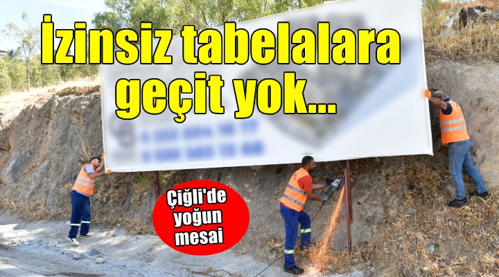 Çiğli Belediyesi, İzmir Büyükşehir Belediyesi’nin “Kamuya Ait Açık Alanlarda İlan, Reklam ve Tanıtım Uygulamalarına” ilişkin yönetmeliğinin 7. maddesine dayanarak, ilçe genelinde izinsiz tabela, ilan ve reklam araçlarını kaldırıyor.