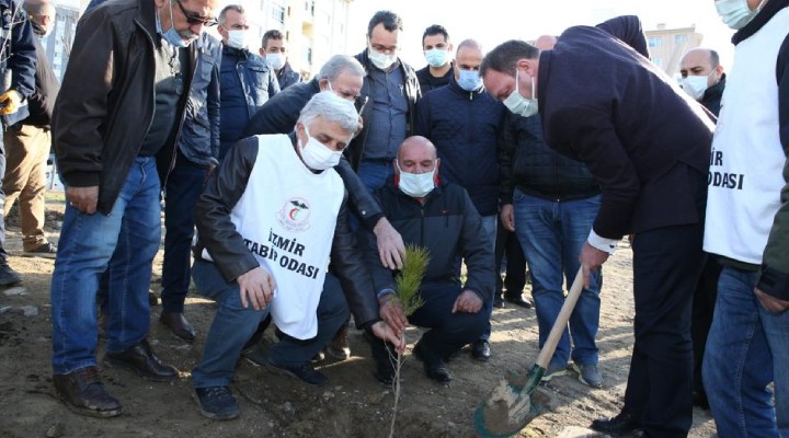 Çiğli Belediyesi, toplum sağlığını korumak adına Covid-19 salgınıyla mücadele eden ve yaşamını yitiren sağlık emekçilerinin hatıralarını yaşatmak için İzmir Tabip Odası'nın katkılarıyla Atatürk Mahallesi'nde fidan dikme etkinliği yaptı.