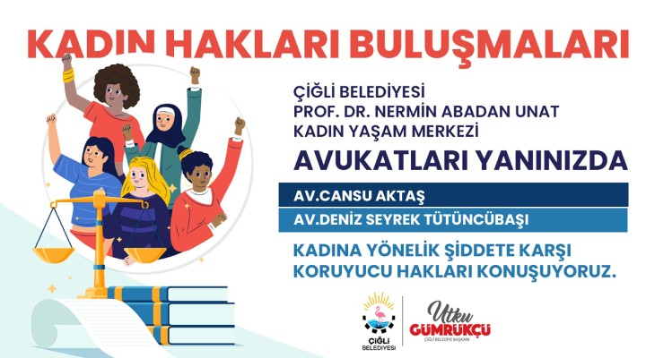 Başkan Utku Gümrükçü öncülüğünde kadınların toplumsal hayatın her alanında eşit ve güçlü şekilde yer alması adına çalışmalarını sürdüren Çiğli Belediyesi'nden bu anlamda önemli bir adım daha geldi. Kadın ve Aile Hizmetleri Müdürlüğü tarafından, Evka-2 Cemevi’nde düzenlenen Kadın Hakları Buluşmasına Prof. Dr. Nermin Abadan Unat Kadın Yaşam Merkezi'nde görevli Av. Cansu Aktaş ve Av. Deniz Seyrek Tütüncübaşı konuşmacı olarak katıldı. Yoğun katılımın olduğu söyleşide, kadınların maruz kaldığı şiddet olayları karşısında sahip oldukları haklar ve izlemesi gereken yöntemlerle ilgili bilgilendirmede bulunuldu.