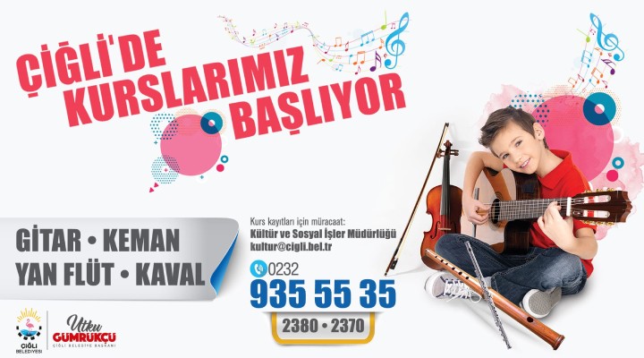 Kurslara kayıt olmak isteyen vatandaşlar Kültür ve Sosyal İşler Müdürlüğü’ne giderek ya da [email protected] ve 0232 935 55 35 (2380-2370) numaralı hat üzerinden işlemlerini gerçekleştirebilecek. Hali hazırda devam eden yetişkin tiyatro, yazı ve senaryo, çocuk bağlama, yetişkin bağlama, yağlı boya resim, su kabağı işlemeciliği ve heykel kurslarının yanı sıra yeni açılan kurslarla birlikte toplam kurs sayısı 13’e yükseldi.