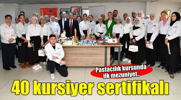 İstihdam garantili pastacılık kurslarında eğitim alan 40 kursiyer sertifikalarını aldı ve 24’ü işe yerleşirken, 2’si de kendi işletmesini kurma yolunda ilerliyor.