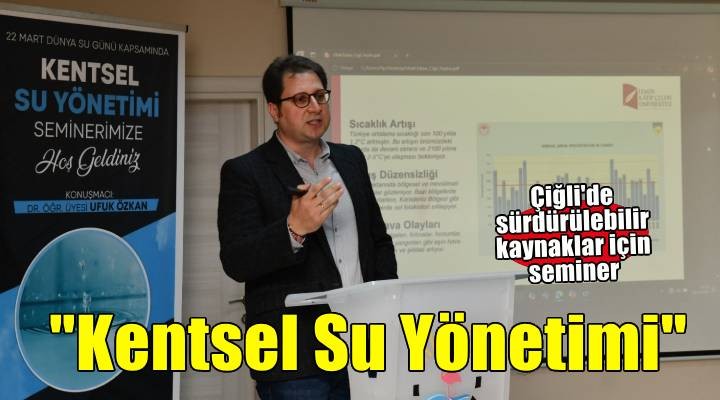 İzmir Katip Çelebi Üniversitesi Orman Fakültesi Havza Amenajmanı Anabilim Dalı Başkanı Dr. Öğr. Üyesi Ufuk Özkan’ın konuşmacı olarak yer aldığı seminerde su ve Çiğli konuşuldu. Seminerde, Çiğli'nin çevresel, sosyal ve ekonomik dinamikleri ele alınarak bölgenin sürdürülebilir kalkınma potansiyeli üzerinde duruldu. Dr. Özkan, özellikle havza yönetimi ve çevre koruma konularında önemli bilgiler paylaşarak, katılımcılara bölgenin doğal kaynaklarının etkin kullanımı ve korunması için önerilerde bulundu.