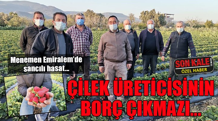 SONKALE'ye konuşan Emiralemli çilek üreticileri, Tarım Kredi Kooperatifi ve fidan işletmelerine olan borçlarını ödeyemez duruma geldiklerini belirterek, çileğe dönüm veya kilo başına destek verilmesini istedi.